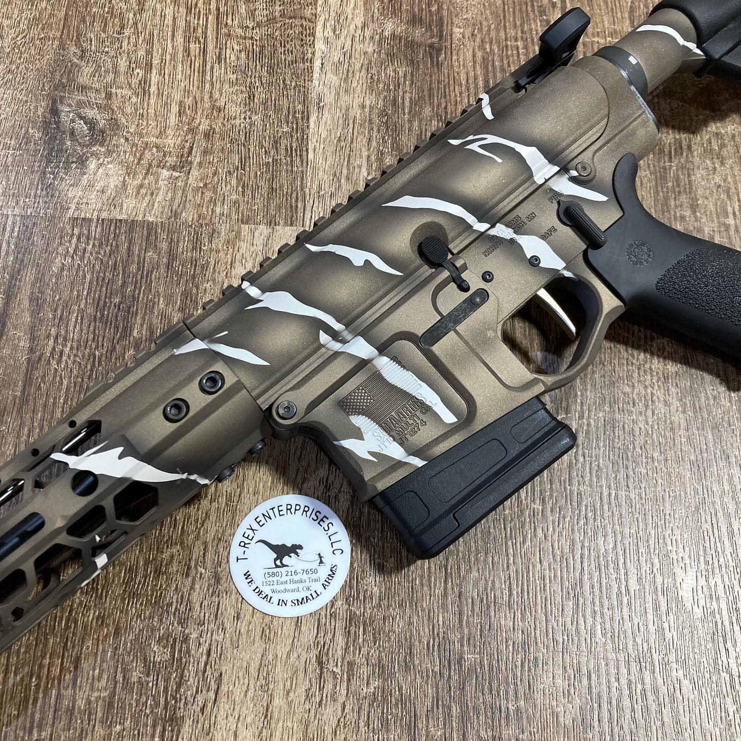 We have a very talented artist that does all of our Cerakote and custom paint jobs. He is not just limited to firearms either! He has painted motorcycles, helmets, and so much more please let us help you with your next custom piece.